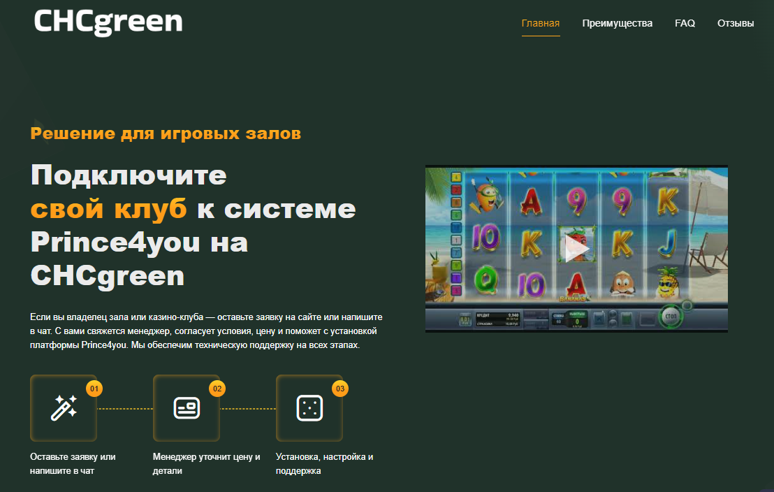 На офіційному ресурсі chcgreen.com представлена система (іноді згадувана як CHCgreen) для організації роботи казино-залів і клубів. Ця система призначена для власників клубів, які шукають готове технічне рішення «під ключ» – від прийому платежів до контролю ігрових автоматів і управління залом. Говорячи про основні переваги та можливості системи, окремо слід згадати наступні:
